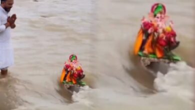 Viral Video: भक्तीची ताकद की गणरायाचा चमत्कार? पाण्याचा मोठा प्रवाह, तरीही विसर्जनावेळी मूर्ती वाहून गेलीच नाही …